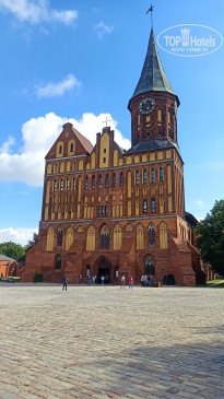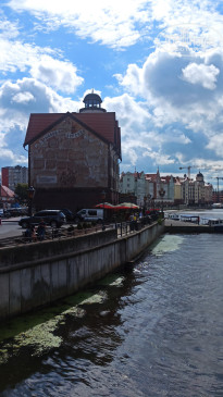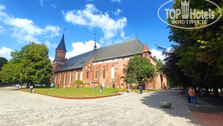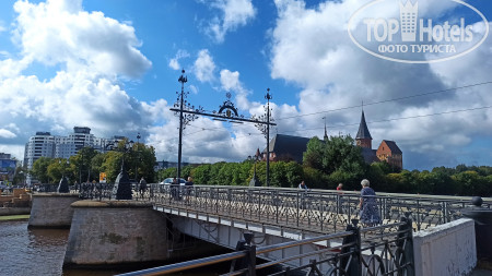 Брала пакетный тур-перелет и проживание. Заселилась на день позже, опоздав на самолет. Заселилась 12.06, 16.06 спросила можно ли вернуть деньги хотя бы за завтраки? Туроператор предупредил, что я приеду на день позднее. По хамски спросили -а вы письменно то предупреждали? В общем, на клиентов им глубоко безразлично... (((( и так заселение. От аэропорта Храброво такси 1000 руб. На ресепшен заселили быстро, заполошная Влада чуть не потеряла мой паспорт. Спросила про чайник, мне ответили- а что вы хотите за 3750? На что я ответила у меня номер стоит 8 в сутки и называется комфорт плюс! Молча выдали чайник... Номер 419. Ну что сказать? Назад в СССР))) звукоизоляции нет, все слышно о сем говорят в коридоре... Комната с краю, поэтому шумно. В коридоре стоит кулер с водой и гладильная доска с утюгом. Вид на озеро... Я бы сказала, это озерцо или даже большая лужа. Рядом идет стройка, стоит дикий гул и шум.. Плюсом в 7-8 утра включается вытяжка ресторана(((( На другую сторону вообще на дорогу. Отель в промзоне, рядом знак заканчивается Калининград. На такси до центра 15-30 минут., на общественном транспорте еще дольше. Троллейбус №2 вечером довозит за 25 минут при условии, что нет пробок. Вечером не погуляешь, таксист вообще посоветовал поздно сюда не возвращаться... (((Завтраки бедные, четвертый день одно и то же... Хотя, сегодня пришла в 9.30 все пусто.. Наскребла себе каши, положила сыра, тосты, фрукты апельсины и яблоки остатки и заветрены... Так что совет приходите пораньше на завтрак!