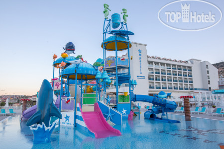Отель отличный ( в первый день давили стены, потому что мы всегда отдыхали в больших отелях с огромными территориями), но на второй день это прошло, отельем выполняется все ,что им заявлено! А менеджер Татьяна ( говорит на русском и решает все вопросы, если таковые вообще могут возникнуть) хочется отметить один отзыв негативный от Александра , парню просто хочется нагадить , со мной отдыхала дочь 12 лет и ее действительно не пустили на 2 горки( бабочку и еще одну ) отметив , что у нее красный браслет,поменяйте на ресепшене , мы пошли на ресепшен и нам поменяли браслет на фиолетовый , и вуаля ребенок катался на всех горках! В отеле прекрасный сервис, питание , уборка номеров и всего отеля в целом . Никакой разливушки , все напитки в бутылках , отличная анимация и днем , и вечером ! Еще вернемся!