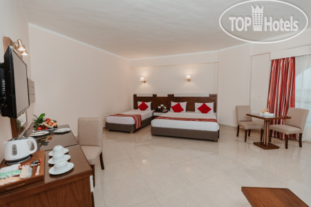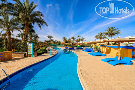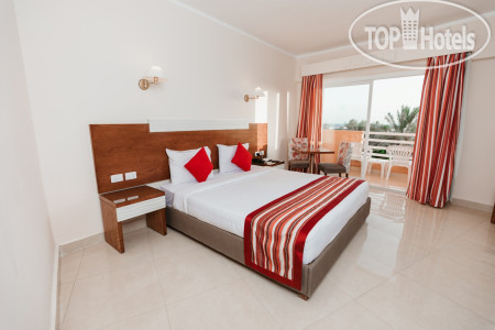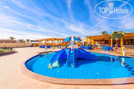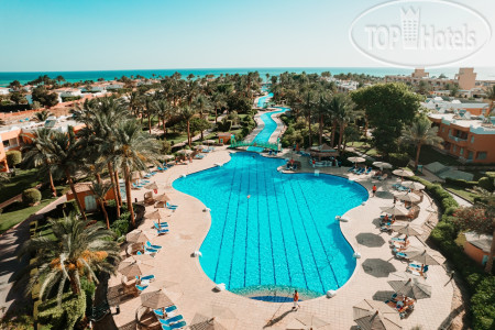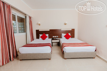 Приехали в отель в 2 ч. ночи, устали после поездки в аэропорт и перелета, благо у одной из наших пар был ранний заезд, им с ребенком дали комнату, а нам сообщили что свободных номеров нет, поэтому надо будет прийти в 12.00. Прошли в номер, который по внешнему виду уже требовал ремонта, дверь закрывалась обычным ключом, в комнате были три односпальные кровати, которые практически на 90% занимали помещение, шкаф купе и небольшое окно, без балкона и возможности сушить белье, ну и ванная комната с небольшим окном. Утром пошли на ресепшн, где нам одели браслеты и предложили идти завтракать. Питание не такое уж и разнообразное, но выбор есть, говядину, курицу и рыбу давали каждый день, выпечка, все вкусно, но есть правило - ничего нельзя выносить с собой. На территории отеля есть бары, на пляже и возле бассейнов, в главном корпусе работает до 23.00, из алкоголя только местные напитки. Территория отеля зеленая и ухоженная, есть небольшой аква парк, мы сходили один раз и этого нам оказалось достаточно, пляж хороший, лежаков много, приходили в разное время и всегда находили свободные, но вот войти в воду с берега и искупаться не получится, так как мелко, утром вода уходит, после обеда приходит - отливы и приливы, чтобы полноценно поплавать надо идти метров сто по понтону и спускаться в воду, но почему-то на третий день нашего отдыха лестницу в конце понтона срезали и невозможно было подняться, приходилось идти на берег по отмели. Отель находится в северной части Хургады, район Эль-Гуна, до аэропорта и центра города ехать примерно 20-25 минут, такси в отеле стоит 25$, но в один из дней мы вышли на улицу и познакомились с местным таксистом, который представился Аладином и за 10$ согласился отвезти нас туда и обратно, подождать пока мы пройдем по магазинам. Аладин показал нам места, где продаются сувениры и отвез на местный базар, где мы купили манго. Аладин говорит на русском языке, вот его номер телефона +201115766170, отвечает на сообщения в ватсапе и звонки, рассказал нам много интересного, очень общительный. Когда пришли после 12.00 на ресепш, нам намекнули что могут поселить в более комфортный номер, стали торговаться, сошлись на 10$, номер оказался с ремонтом, более просторный, с двухспальной кроватью и небольшим видом на море, закрывался магнитным ключом. Каждый вечер в амфитеатре проводят представления, среди аниматоров есть русскоязычная девушка Анастасия, которая часть своего времени уделяла нам. В главном корпуса есть Вай-фай, но его скорость очень слабая, хватает только для переписок. Кроме вечернего представления другого развлечения в отеле нет, он больше рассчитан на семейный отдых, 80% отдыхающих немцы, многие из персонала разговаривают на немецком языке, русский язык знают единицы, но можно и на английском объясниться, вроде понимают.