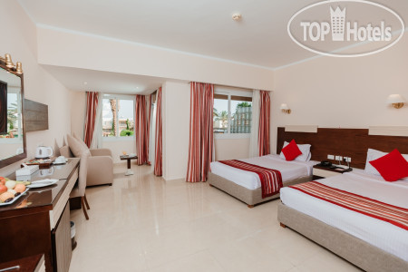 В отеле была проведена реновация. Основная часть корпусов обновлена, номера выглядят очень прилично. При заселении приключилась обычная для Египта история: нам предложили номер в основном корпусе над главным рестораном, с умопомрачительным видом из окна, запахом и шумом. Пока я приходила в себя от возмущения, муж вернулся на ресепшен со словами о невозможности проживания в таком варианте и нам без доплат предложили номер в другом корпусе, который очень понравился).