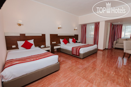 Ездили в сентябре с семьёй. Читали много положительных отзывов. У отеля своя большая зелёная территория , которая утопает в зелени и всевозможных экзотических деревьях, но на этом все.... Заселили в стандартный семейный номер, большой, но мебель вся просто убитая, сколоченный вручную столик с гвоздями, обшарпанная мебель, шумный кондиционер , который еле охлаждает. После принятия душа , придется выходить в лужу с водой , потому что кабинка протекает. На светильниках слой пыли, хоть и каждый день уборка номеров.Постельное и полотенца меняют каждый день, по бутылочке воды на человека, ну это все стандартно.