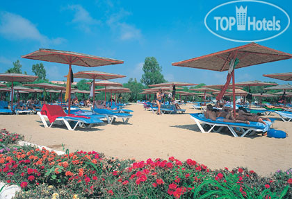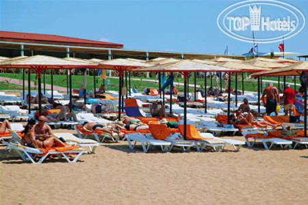 Пляж и море прекрасные - главный козырь этого отеля, но даже не в сезон к 10-11 часам в общем-то все лежаки оказывались заняты. Приходить пораньше и занимать лежаки полотенцами вовсю практикуется. Зонтики, конечно, специфические.