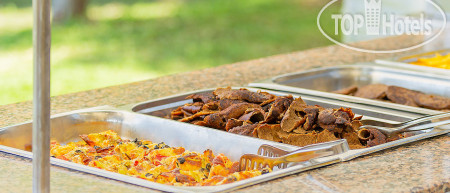 Еда - ну очень все скудно. то ли конец сезона (при этом отель заполнен!), то ли понятие "хорошая кухня" у всех разные. Не разделяю мнение о том, что в отеле прям какая-то очень хорошая еда. Не заметила. Скучно, однообразно, скудно. Приготовление самое простое. Сладости ни о чем. Завтрак просто никакой, ужин туда-сюда, но одно и то же. В общем без особого удовольствия и настроения, просто поесть. Ресторан - столовка-жральня по сути. Ни малейшего лоска. На грани с брезгливостью. Даже чайных ложек нет) Пластиковые ложки и деревянные палочки - это днище. посуда - да, иногда не оч. чистая, надо смотреть какие тарелки и приборы берешь. К тому же старая. Официанты вроде снуют туда-сюда, а ощущения прям чистоты нет. Столы не особо успевают убирать, к тому же трясут грязной посудой, собираемой со столов на эти свои тележки прямо посреди ресторана. Некоторые делают это очень не аккуратно, того гляди остатки из тарелок польются на гостя отеля. Не очень аппетитное зрелище.