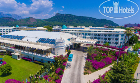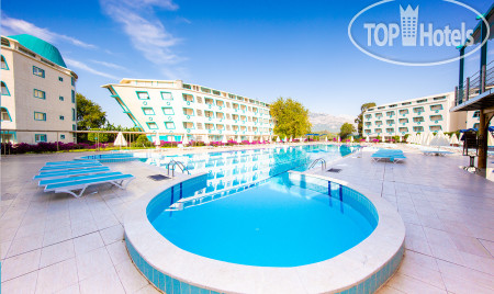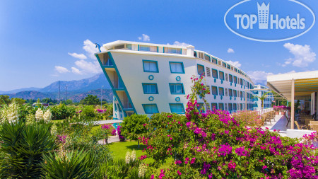 В пятёрках отдыхаю редко тк зачастую не с кем ехать, а одной жить в пятёрке это накладно... Эта с виду красивая, корпуса в виде корабликов, расположение корпусов в принципе удобное. Стоит отель на отшибе, около дороги,удобно что прямо рядом остановка, чтобы поехать в сам Кемер на автобусе тк расположен отель в посёлке Кириши в 15- 20 минутах от Кемера. Заселение было позже 12 тк что то у них не срасталось и многие люди стояли и жаловались, например, женщина возмущалась что с ребёнком, а их не заселяют... Вай фай у них только в зоне ресепшена, в номерах не ловит от слова совсем, на пляже тем более... Сам номер старенький но жить можно, нам достался с видом на бассейн и частично на второй этаж столовой... До пляжа нужно идти минут пять через аквапарк, который можно посещать бесплатно от отеля, но я его не посещала тк катастрофически боюсь этих горок, да и тащить подушку надувную наверх по лестницам не самый хороший вариант... Сам пляж с мелкой галькой и нужны акватапочки тк заходить в море больновато особенно, когда тебя шатают волны. Лежаков всегда было предостаточно, сам пляжный отсек отеля тоже крайний и дальше только местные тусуются... Есть рядом какое то болото с птицами. Бар и тусовочный отсек на пляже не впечатлил, понятное дело очереди постоянно. В самом отеле еда на любой вкус, но во всех отелях она в принципе одинаковая рис, картошка фри, салаты, овощи, фрукты, булки, пироженки итд. Несколько раз давали красную рыбу. Еда понравилась, но я непривиредливая и всегда найду, что покушать. Очень нравились завтраки блинчики, омлет. По погоде было невыносимо жарко тк отдыхали в июле, а я имею склонность обгорать и поэтому вся обгорела, хоть и находилась на пляже ло 11 утром и потом только после 16.В бассейне проводилась аквааэробика, в принципе неплохо, но девушка говорила не по русски... В выходные приезжало много местных в платках и какие то детские футбольные команды, что очень не понравилось тк дети в столовой вечно бегали орали и создавали очереди. Поэтому на втором этаже открыли вторую столовую, где была таже еда но пройти можно было тем, кто без детей....Про анимацию сказать ничего не могу тк не любитель подобного, но вроде играли песни ласкового мая.. В целом как вариант отдыха неплохо, но второй раз бы не поехала.