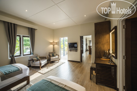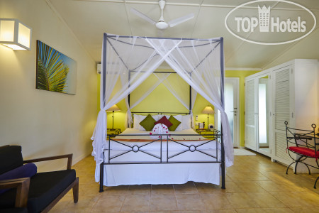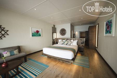 Мы жили в зоне О в Jacuzzi Beach Villa. Всё соответствует фотографиям на сайте. Техника и мебель в очень хорошем состоянии. Не ушатанные, а, можно сказать, новые. Оборудование: телевизор, стереосистема, кофемашина, фен, сейф, телефон, кондиционер, потолочный большой вентилятор, минибар-холодильник, винный бар-холодильник, чайник, посуда, ложки. На столе всегда присутствует информация что в минибаре по AIP, а что за дополнительную плату, но если в кратце, то ежедневно бесплатно: куча колы-фанты-спрайта-чая-молока-соков, шоколадки-конфетки-снеки, 4 банки пива, 3 стандартных бутылки испанского сухого (красное, белое, розовое), 2 капсулы кофе, чай.
