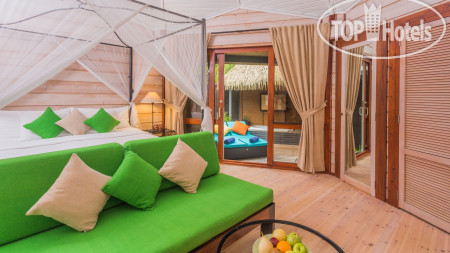 Этот резорт нам выбрала дочка. Отдыхали 24.06-04.07.Он оправдал все ожидания. Нас встречали с музыкой и улыбкой. Персонал приветливый и доброжелательный. Хостэс клиентоориентированный. Отдельная благодарность ГАЯНУ! Он молодец знает русский язык и пишет. Дали нам водную виллу, с собственным выходом в океан без волнорезов, они с другой стороны острова для вилл с детьми. Глубина позволяет комфортно плавать, примерно доходит до 1 метра, не на многих островах так расположены водные виллы. Риф хороший рыбки, акулы, скаты и черепахи. Муж ездил на рыбалку поймал тунца и видел дельфинов. Сам остров божественно красив и большой по размеру. Так же на острове имеется живность и красивая, длинная коса! Вечером разные развлекательные программы. Кто предпочитает активность, то лучше брать все включено это выгоднее чем платить по отдельности. И конечно же не мало важное питание, отличное, разнообразная кухня, завтраки, обеды и ужины. Отели три ресторана и поделены в зависимости от номеров. Мы отмечали день рождения и каждый уделил нам внимания, в ресторане украсили наш стол и приготовили персональный тортик со свечами и с песней хэппи бездэй, вечером принесли шампанское в номер, Клининг украсил нам кровать это было так приятно и здорово! Время проведенное на этом божественно красивом острове и прекрасными людьми бесценно! Спасибо всем и обязательно вернемся сюда снова и снова!